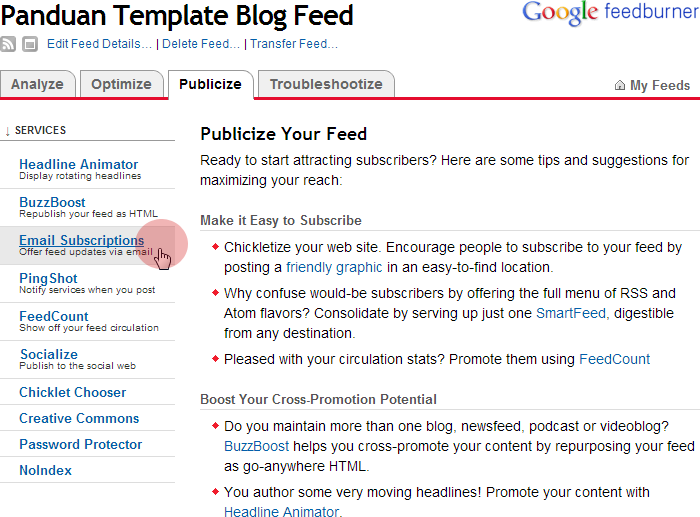Jika feeds blog belum dibuat, maka berikut saya jelaskan secara singkat dan lengkap